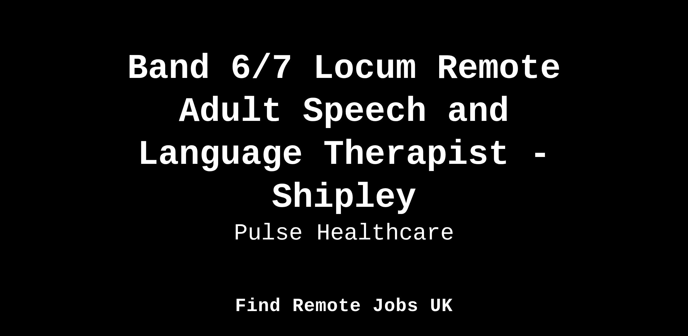 Job Title: Locum Remote Adult Community Speech and Language Therapist